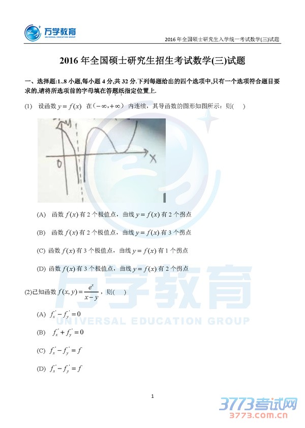 2016考研数学三真题及答案完整版 2016年全国硕士研究生入学统一考试数学(三)答案