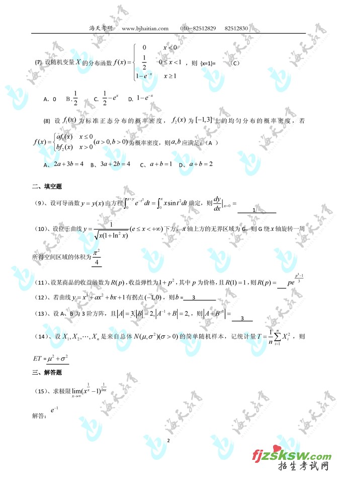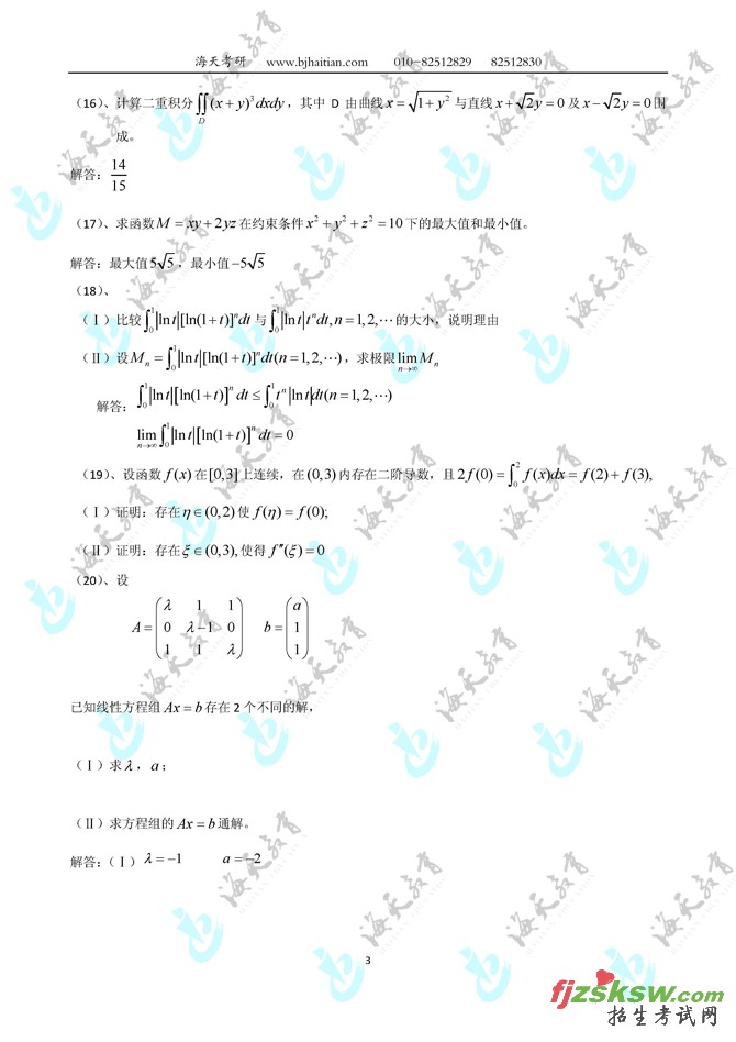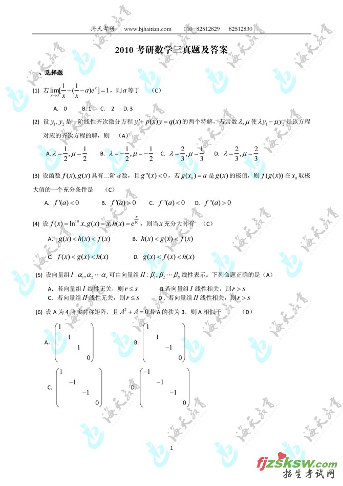 [组图]2010考研数学(三)真题及参考答案