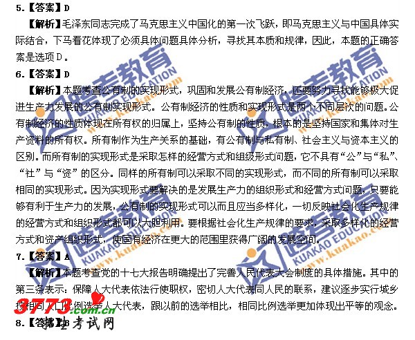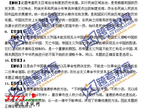 [组图]跨考教育2012考研政治单选题真题答案解析