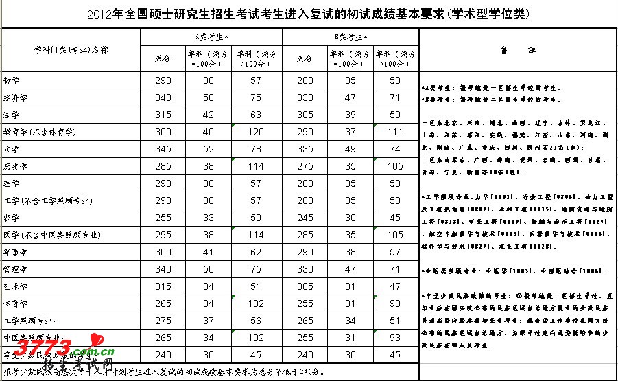 [组图]2012年研究生考试进入复试的初试成绩基本要求