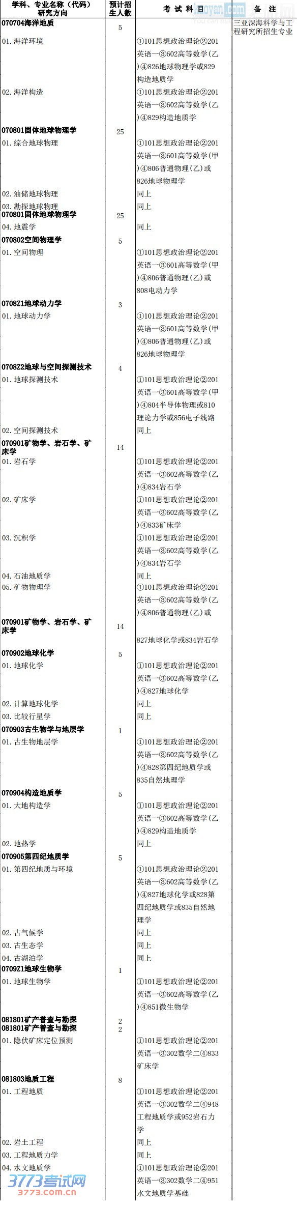 [图文]2014地质与地球物理研究所硕士学位研究生招生目录