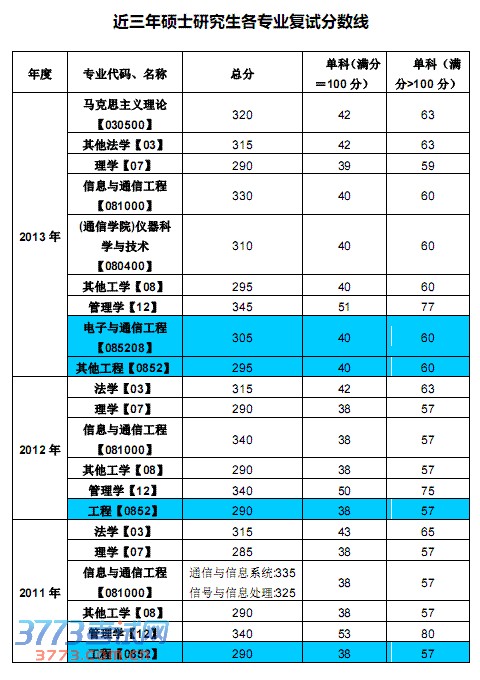 [图文]近三年重庆邮电大学研究生各专业复试分数线