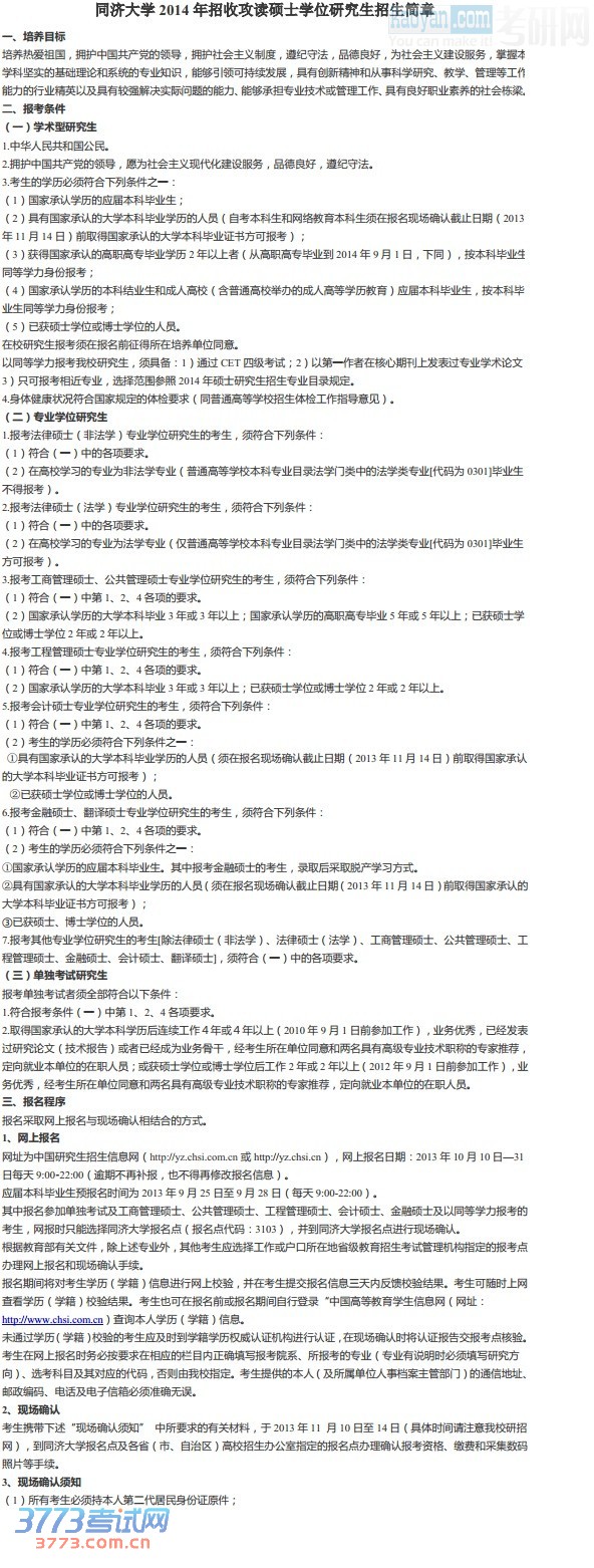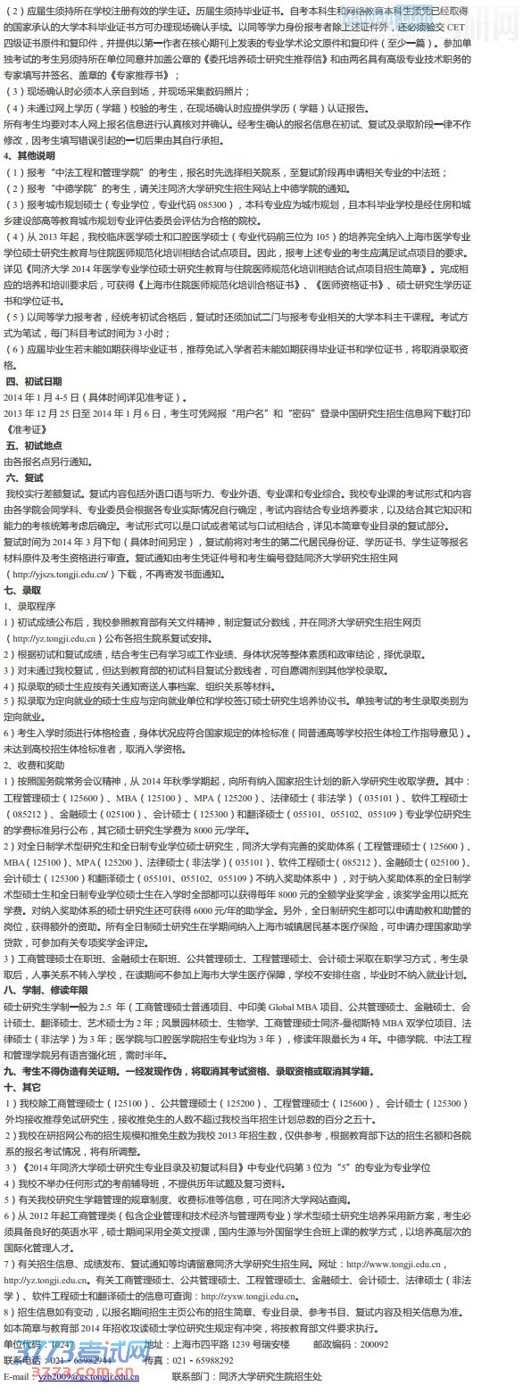 [组图]同济大学2014年考研招生简章