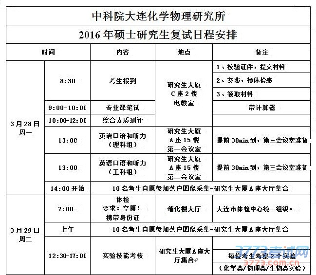 [组图]中科院大连化学物理研究所2016考研复试日程