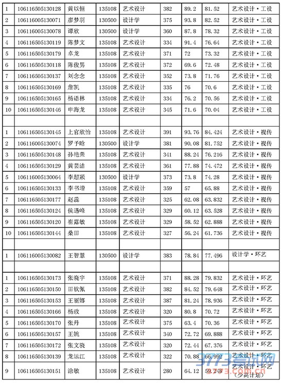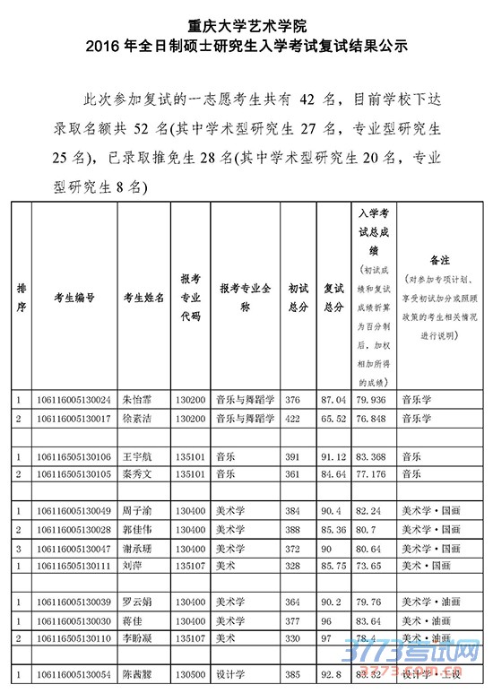 [组图]2016年重庆大学艺术学院硕士研究生复试结果公示