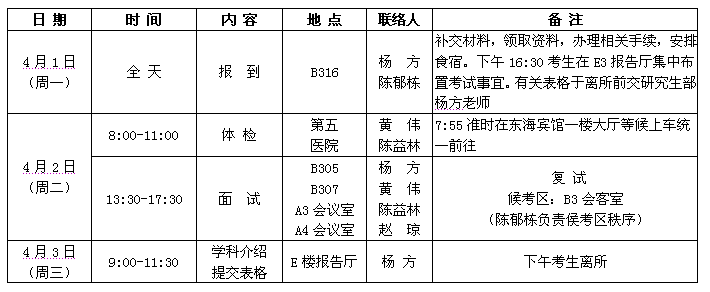 4、每位考生参加综合素质考核、业务能力面试以及外语听力和口语测试的综合时间为15-20分钟。
