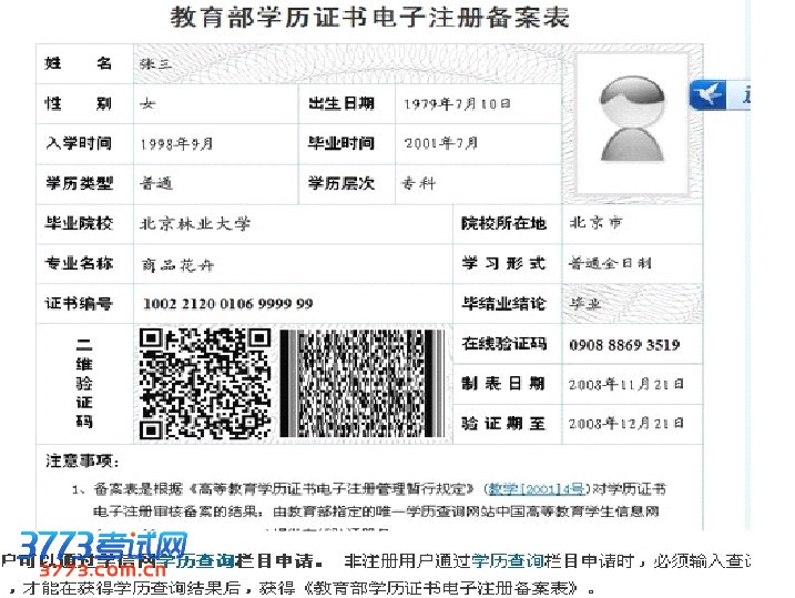 附件2:样表二、教育部学历证书电子注册备案表(往届毕业生)