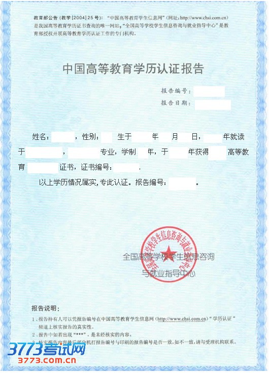 ③ 网上无法查询学籍学历信息的考生提交《中国高等教育学历认证报告 》 ,见样表三 ( 由 全 国 高 等 学 校 学 生 信 息 咨 询 与 就 业 指 导 中 心 出 具 , 办 理 网 址 :