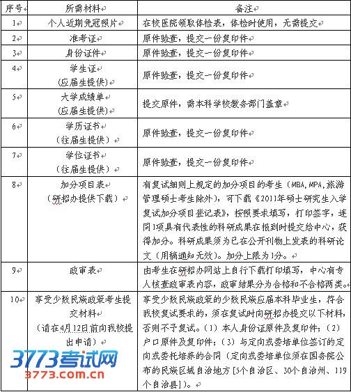 (三)报到时考生须提交以下材料以备复试资格审核: