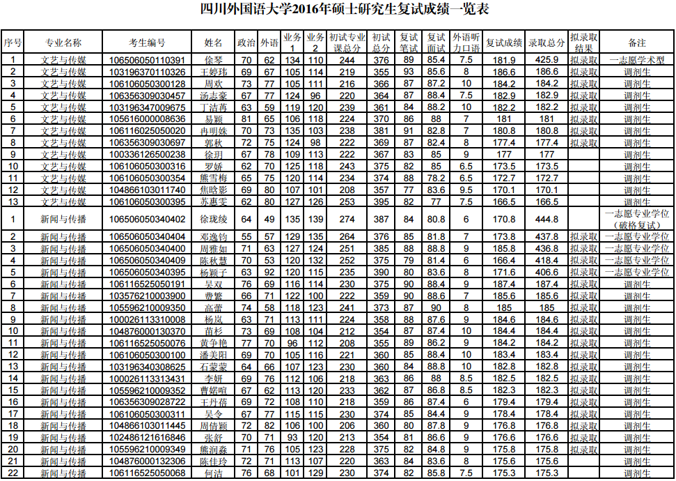 [组图]2016年四川外国语大学新闻传播学院拟录取名单