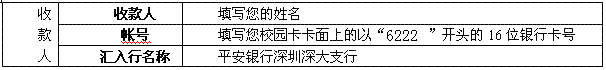 (注:为了更方便您的汇款,您可直接告知汇出银行您的收款行行号:313584000369 平安银行咨询电话:0755-26534383)