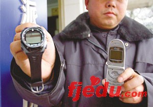 今年考研在即,一款外观普通的电子表,能经考生骨头把答案信号输入耳朵作弊,且能屏蔽考场干扰器材助作弊?昨下午,携带此反屏蔽考研作弊器材的“西南考王”在重庆邮电大学被警方生擒。此前,他坦言在主城各大高校张贴作弊器材小广告。