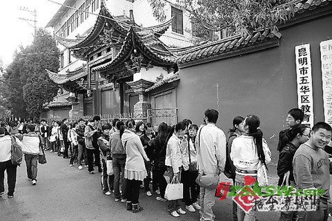 考研人数猛增,报名现场每每排起长队。记者 江洋 摄
