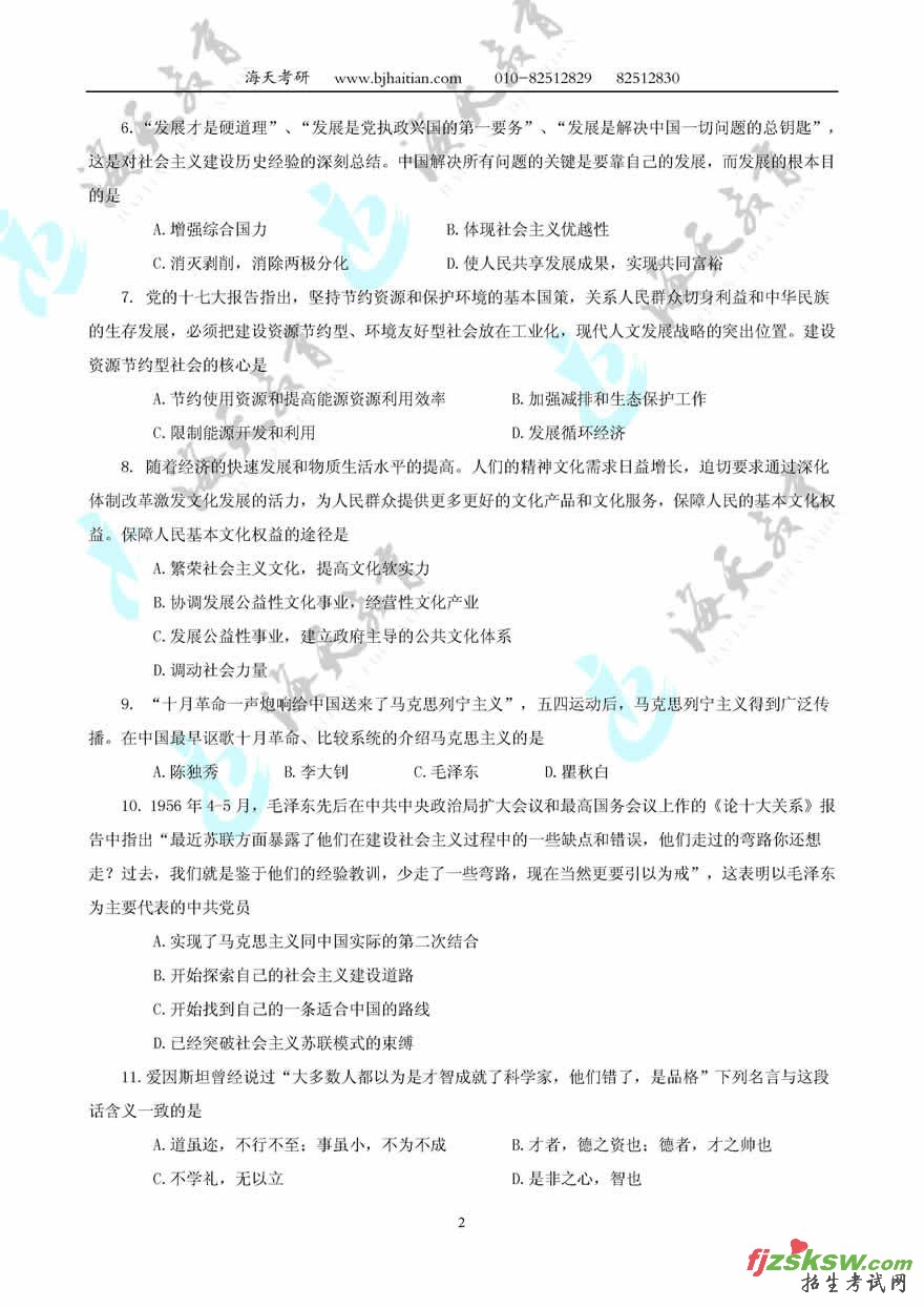 [组图]2010年全国硕士研究生入学统一考试政治真题及答案