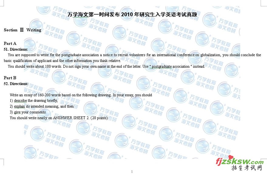 [组图]2010全国硕士研究生入学统一考试英语一真题及答案