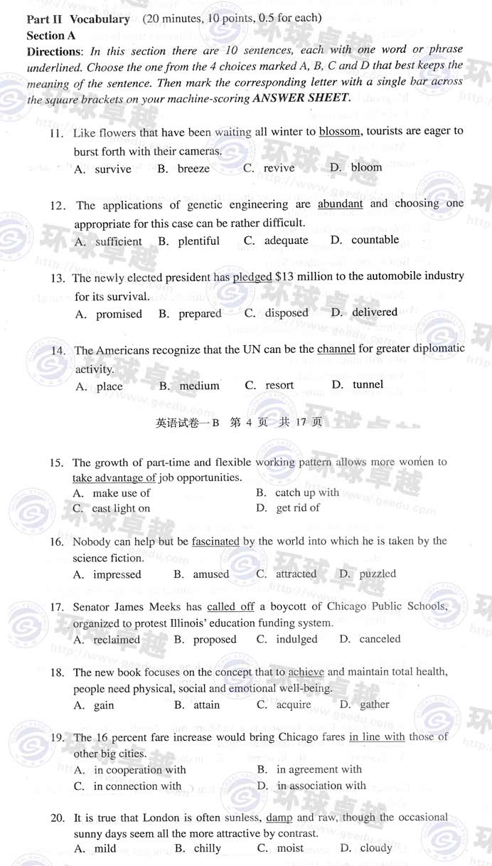 [组图]2009年同等学力申硕考试英语试题答案B卷