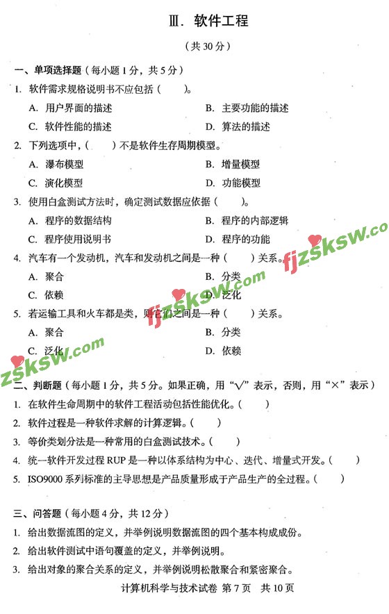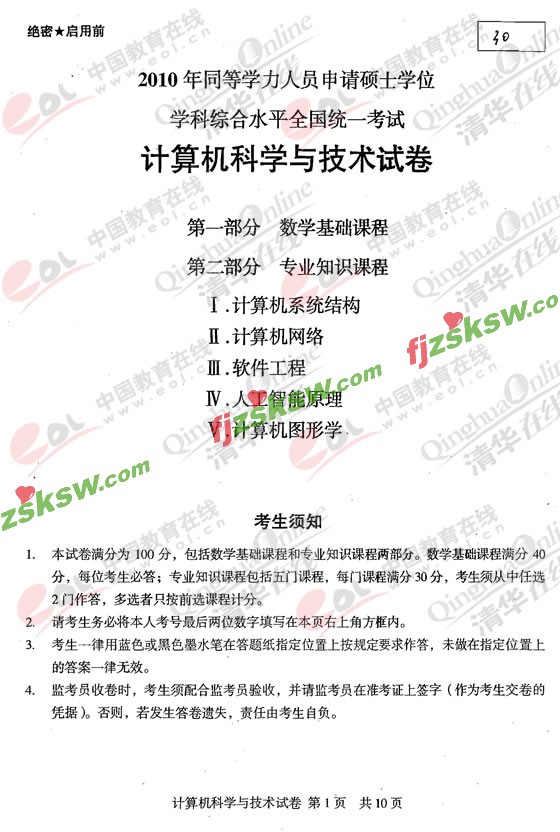 [组图]2010年同等学力申硕计算机科学与技术真题