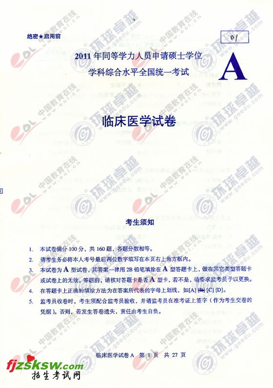 [组图]同等学力申硕2011临床医学综合真题及答案