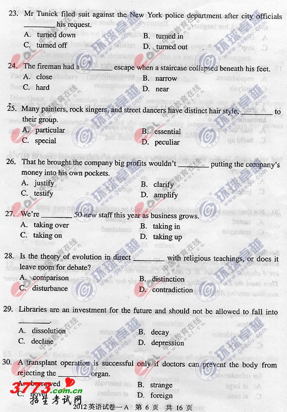 [组图]2012同等学力申硕英语真题(A卷)及答案