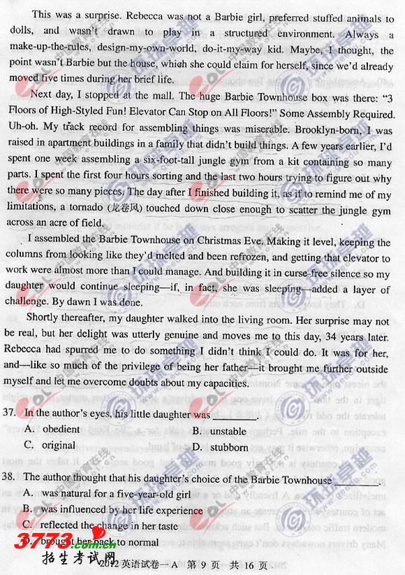 [组图]2012同等学力申硕英语真题(A卷)及答案