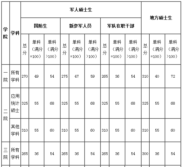 1、国防生、普通高校应届本科毕业生:按照附件1所示复试分数线,达线者参加复试。
