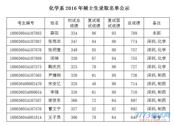 [图文]2016年清华大学化学系硕士生录取名单公示