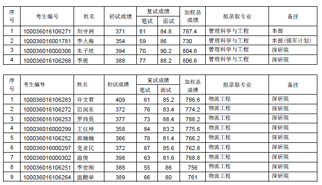 [图文]2016年清华大学工业工程系研究生成绩及拟录取名单