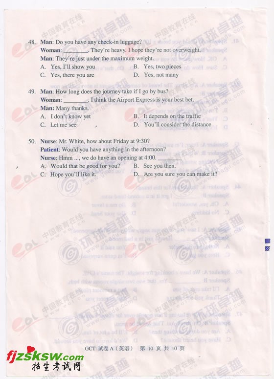 [组图]2010年10月在职GCTA卷英语真题及答案