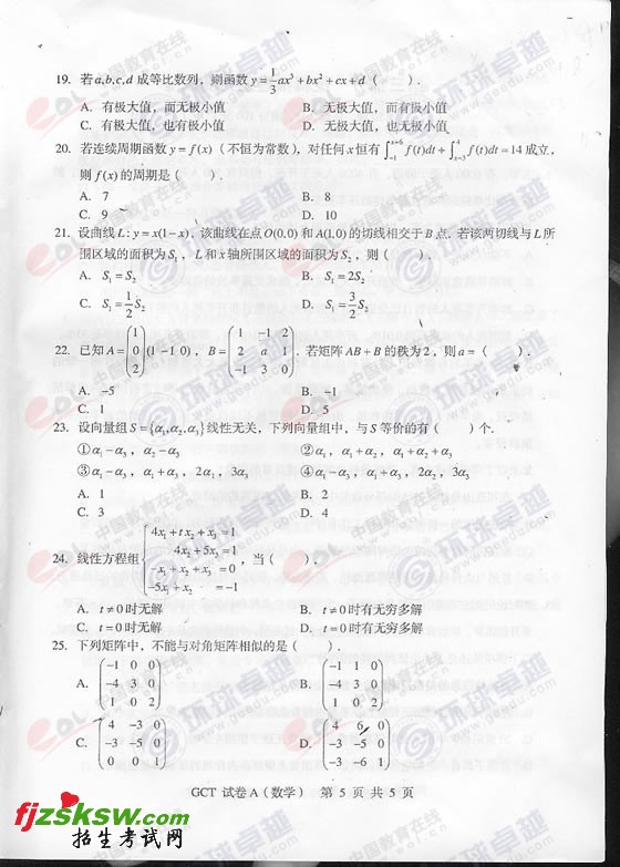 2010年10月GCT在职数学A卷真题