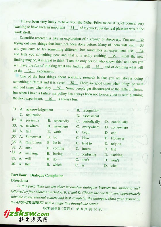 相关文章 2010年10月在职GCT数学B卷答案2010年10月在职GCT语文B卷答案2010年10月在职GCT逻辑B卷答案2010年10月在职GCT逻辑A卷答案2010年10月在职GCT数学A卷答案2010年10月在职GCT语文A卷答案2010年10月GCT在职语言表达B卷真题2010年10月GCT在职数学B卷真题2010年10月GCT在职逻辑B卷真题2010年10月GCT在职语言表达真题A卷 触屏版 电脑版 3773考试网 琼ICP备12003406号-1