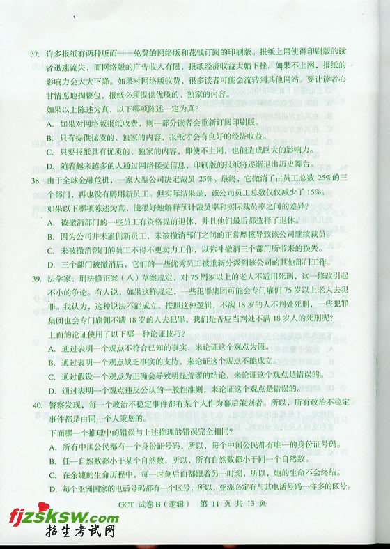 [组图]2010年10月GCT在职逻辑B卷真题