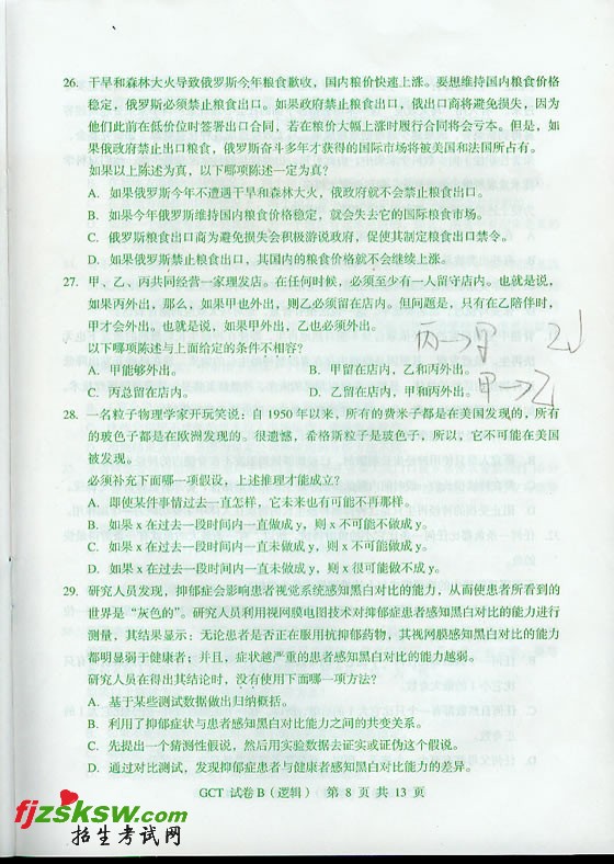 [组图]2010年10月GCT在职逻辑B卷真题
