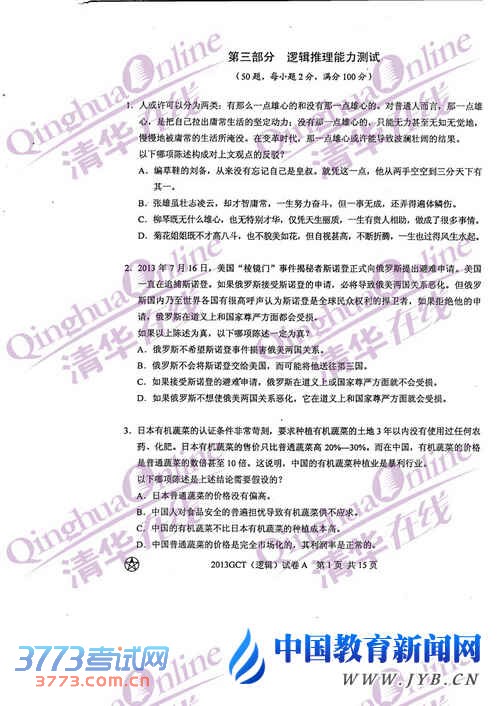 2013年在职联考GCT逻辑真题A卷参考答案