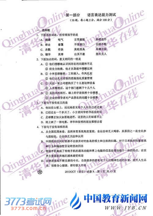 2013年在职联考GCT语文真题A卷参考答案