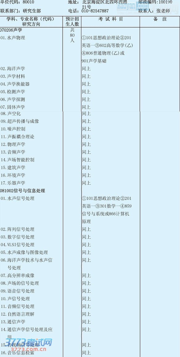 [组图]2014中科院声学研究所硕士招生专业目录