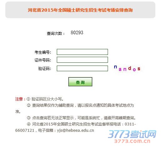 河北省2015年全国硕士研究生招生考试考场安排查询