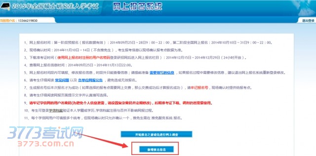 4、查看网上报名信息时间:2014年09月25日~2014年11月13日22:00。