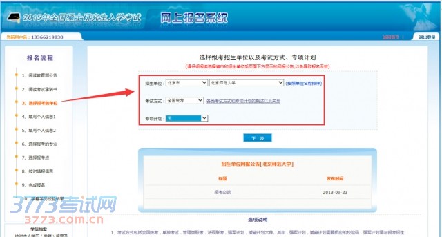 注:参加2014年(及之前)研招报名时注册的研招网个人帐号,需要重新注册后才能使用。