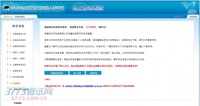 第9步,完成报名!牢记报名号,如果丢了会非常麻烦。