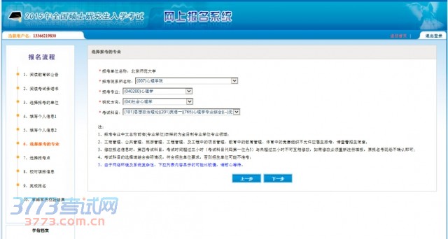 8、请考生仔细阅读网报页面提示文字并认真填写选择。