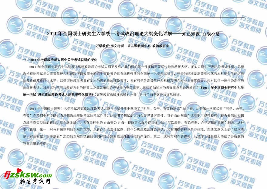 [组图]全国研究生考试2011年政治理论大纲变化详解