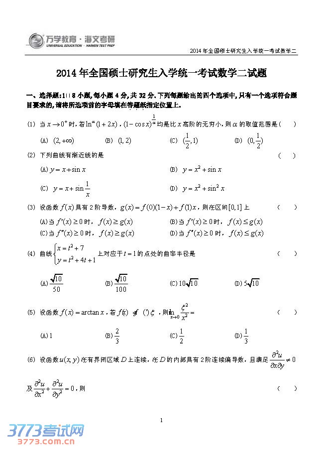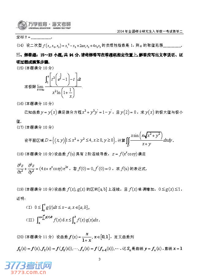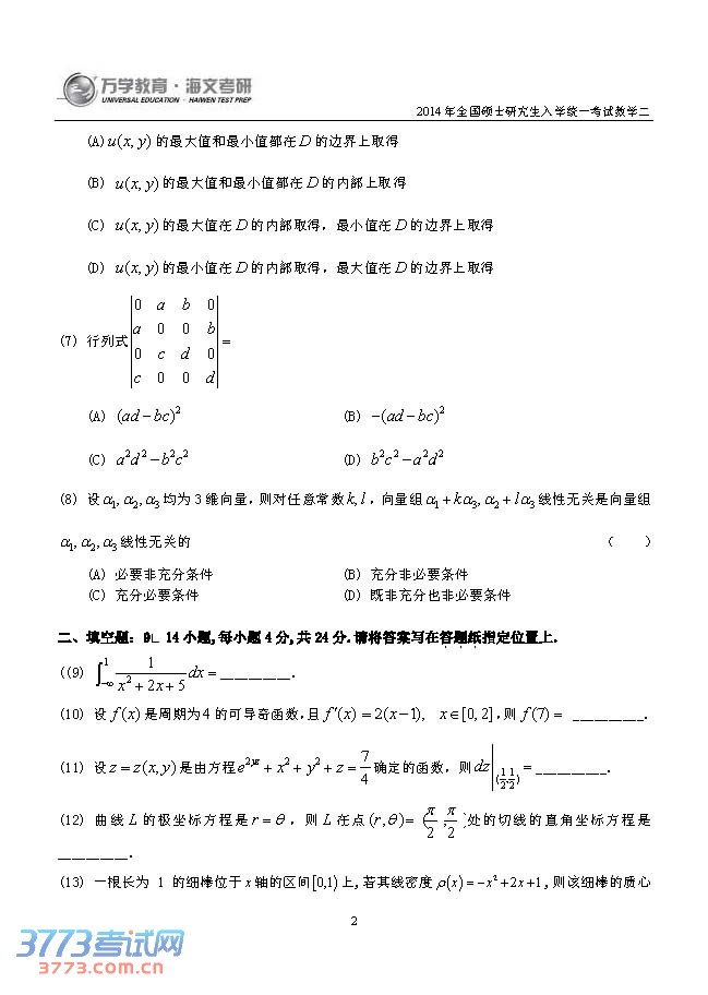 [组图]2014考研数学二真题试题(完整图片版)