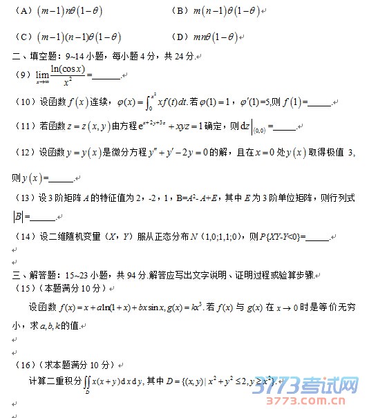 3773考试网2017考研考研数学正文