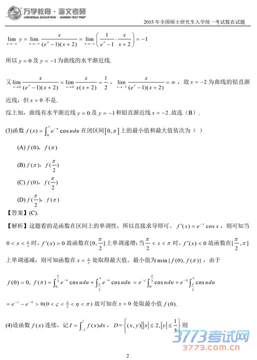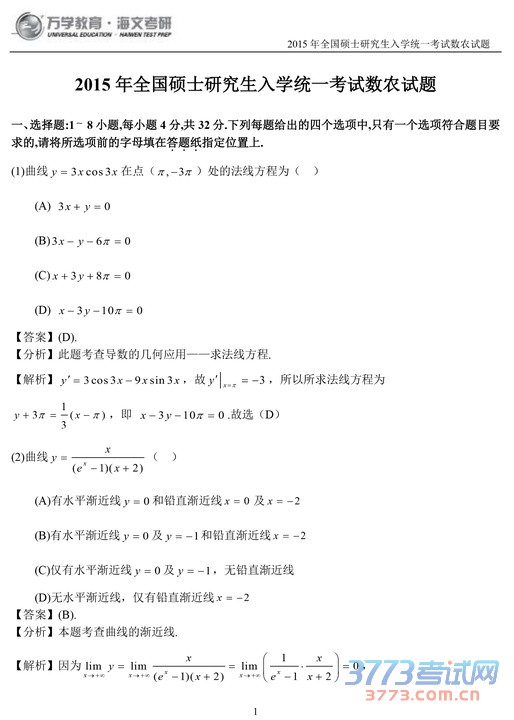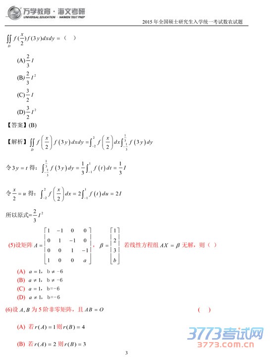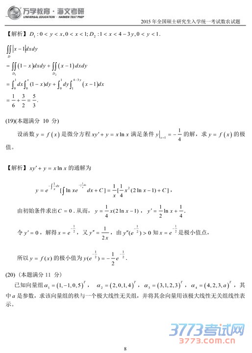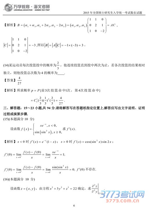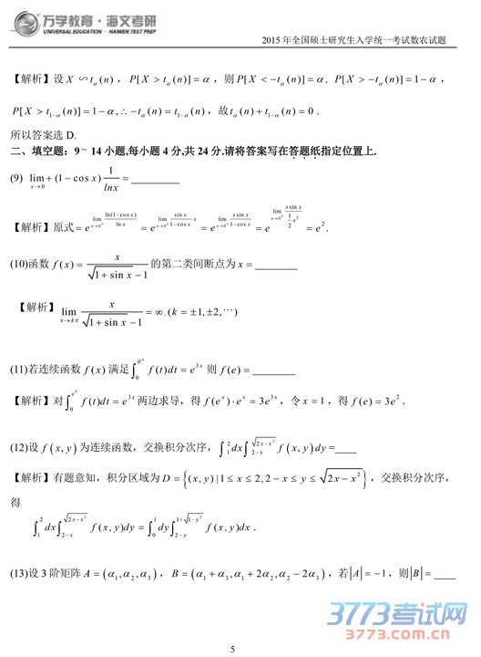 相关文章 2015考研数学三试题及答案解析2015考研数学二试题及答案解析2015考研数学一真题及答案解析2015考研数学一试题及答案及解析完整版2015考研管理类联考初数真题解析之抽签原理2015考研管理类联考初数真题解析之三角不等式2015首都师范大学教育学考研774真题分析2015西南大学专硕333教育基础真题分析2015考研中科院大学应用心理硕士真题分析2015西南大学教育学考研真题解析 触屏版 电脑版 3773考试网 琼ICP备12003406号-1