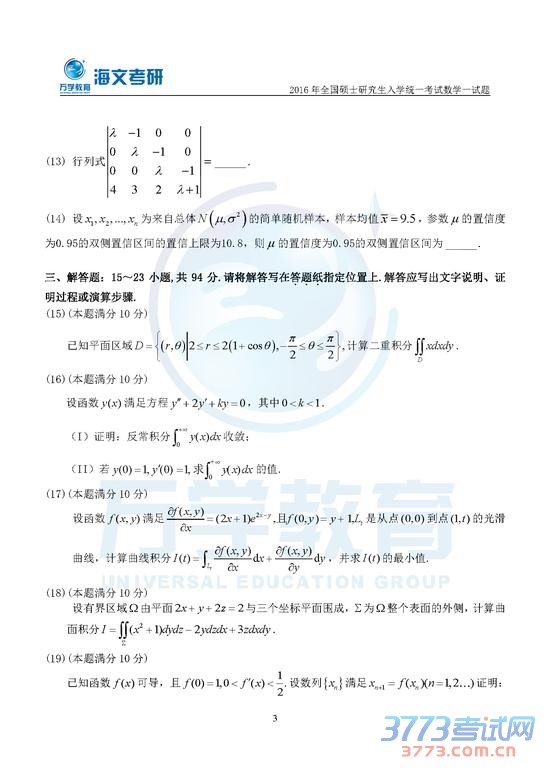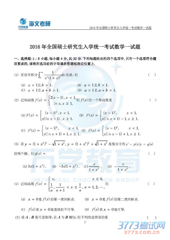 数学(一)已结束考试,特数学真题整理如下,供考生参考。