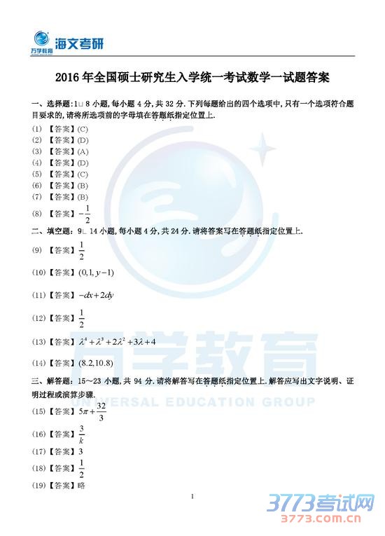 数学(一)已结束考试,特数学真题整理如下,供考生参考。