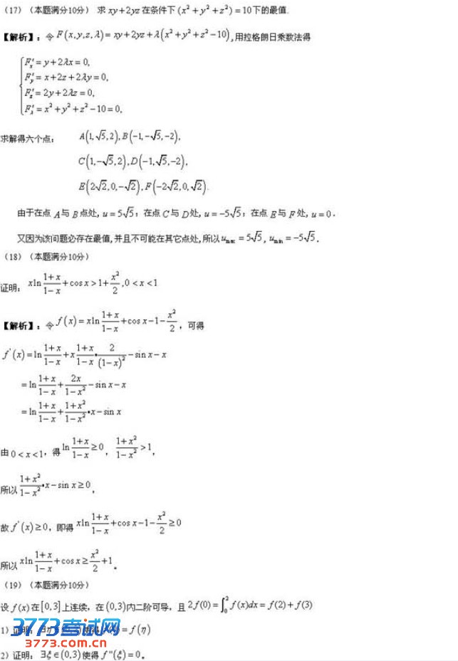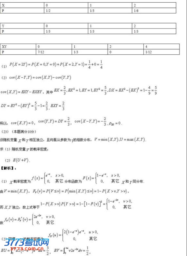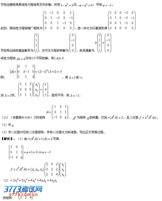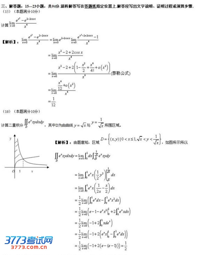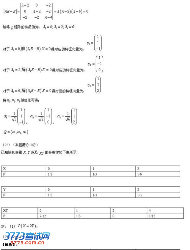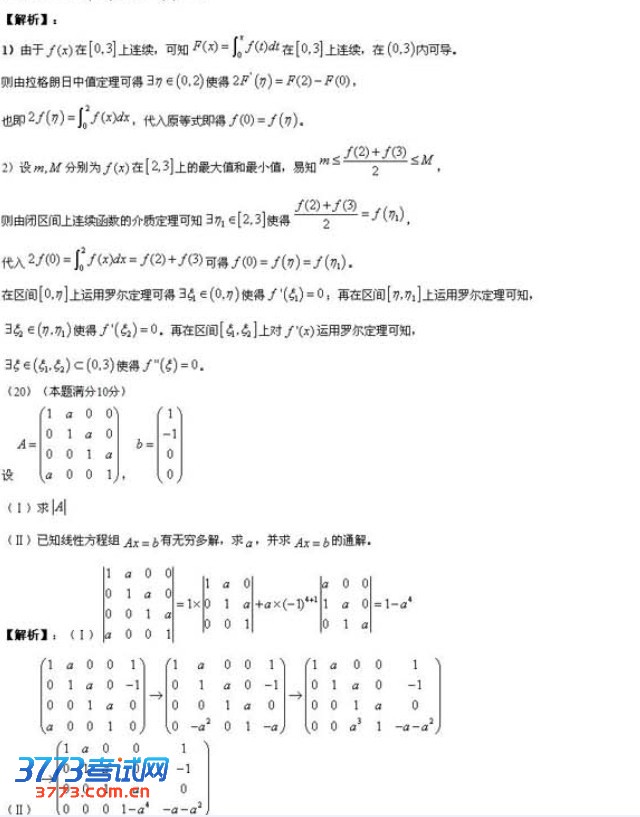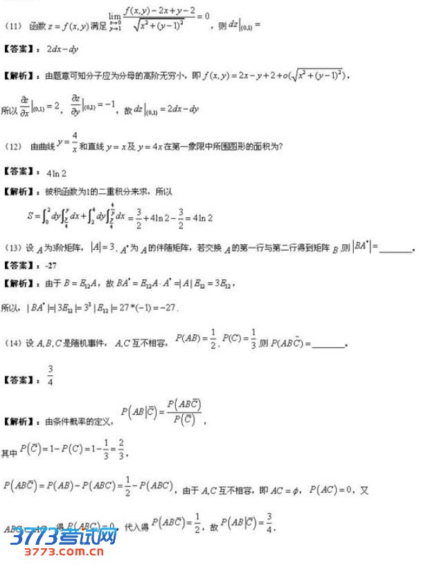 2012年考研真题及答案解析  2012考研数学三真题答案完整版(网络版)