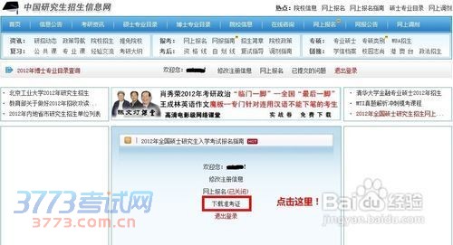 第二步:登录完后,会出现你的用户名、修改注册信息、网上报名、已提交问题、退出登录,点击网上报名,会进入一个个人的页面,如下图,点击下载准考证。