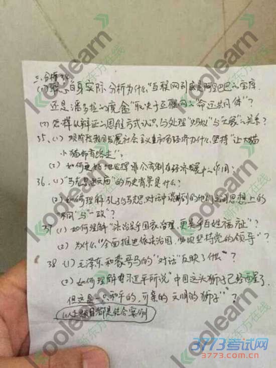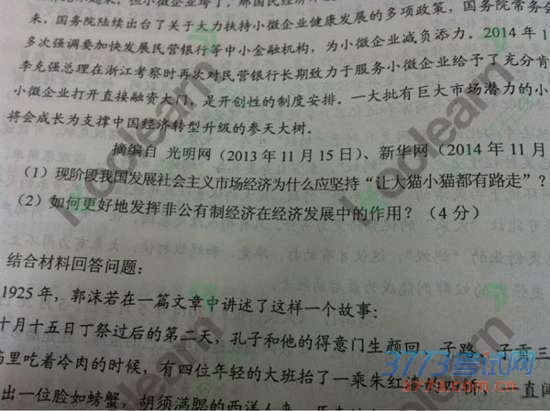 [组图]2015考试政治真题试题图片版发布