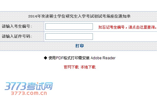 官网下载 本地下载 2014年攻读硕士学位研究生入学考试初试考场座位通知单